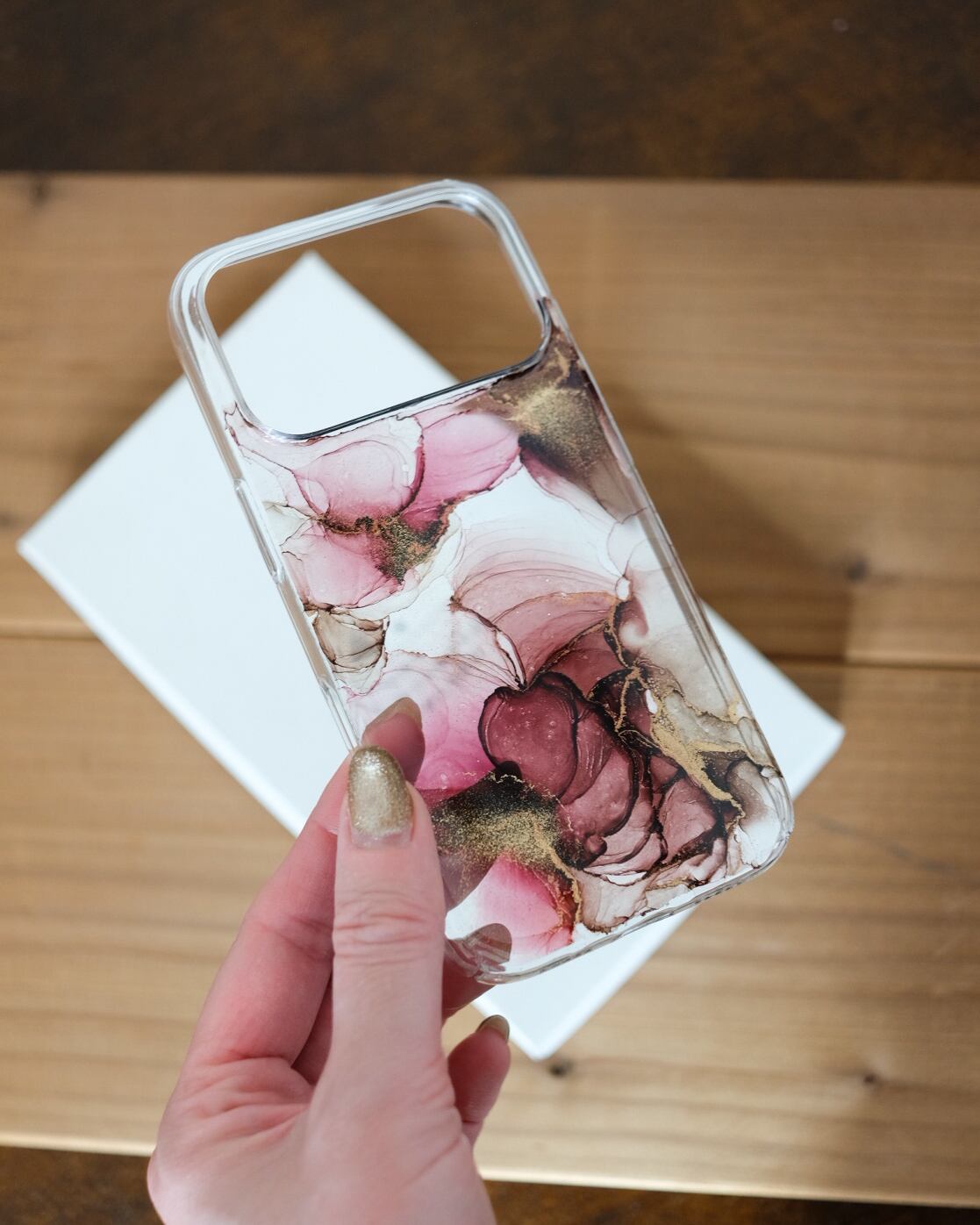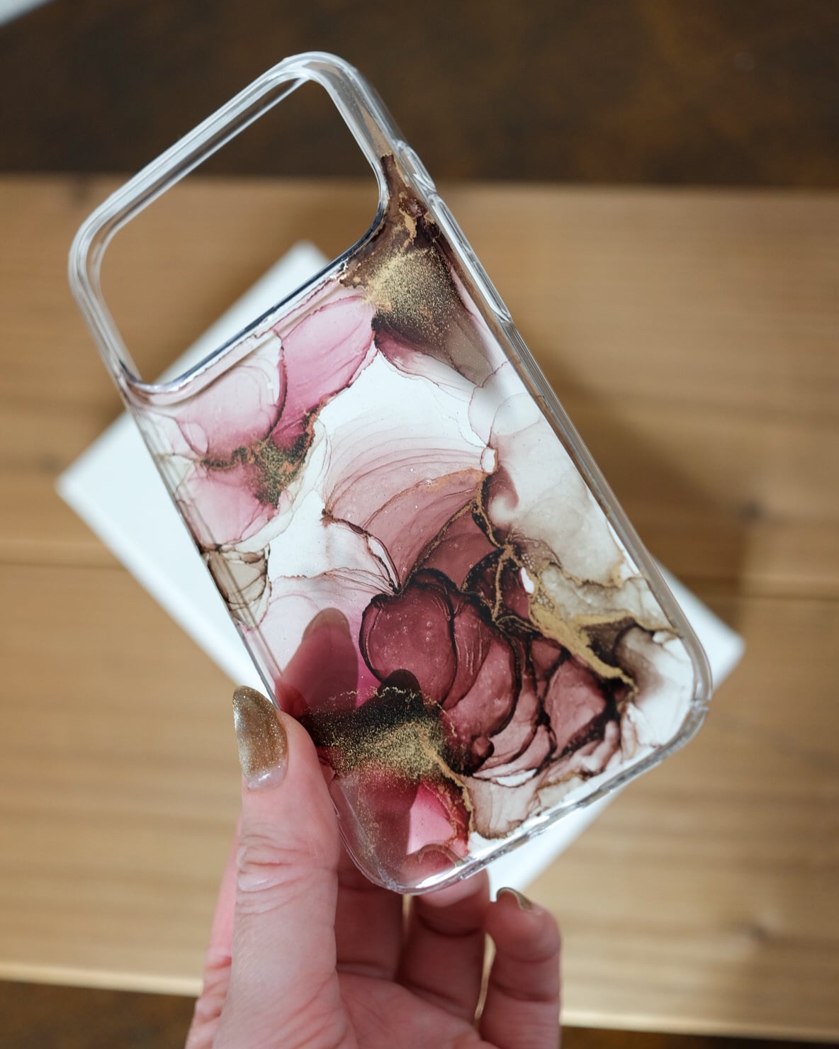 透明なケースに、アルコールインクアートをほどこした、あなただけのiPhoneケースです