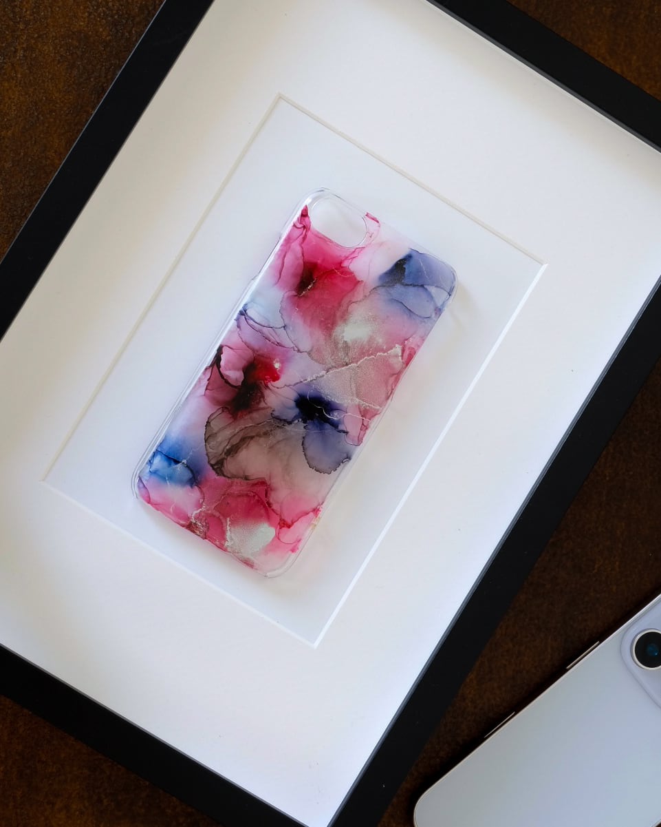 透明なケースに、アルコールインクアートをほどこした、あなただけのスマホケースです
