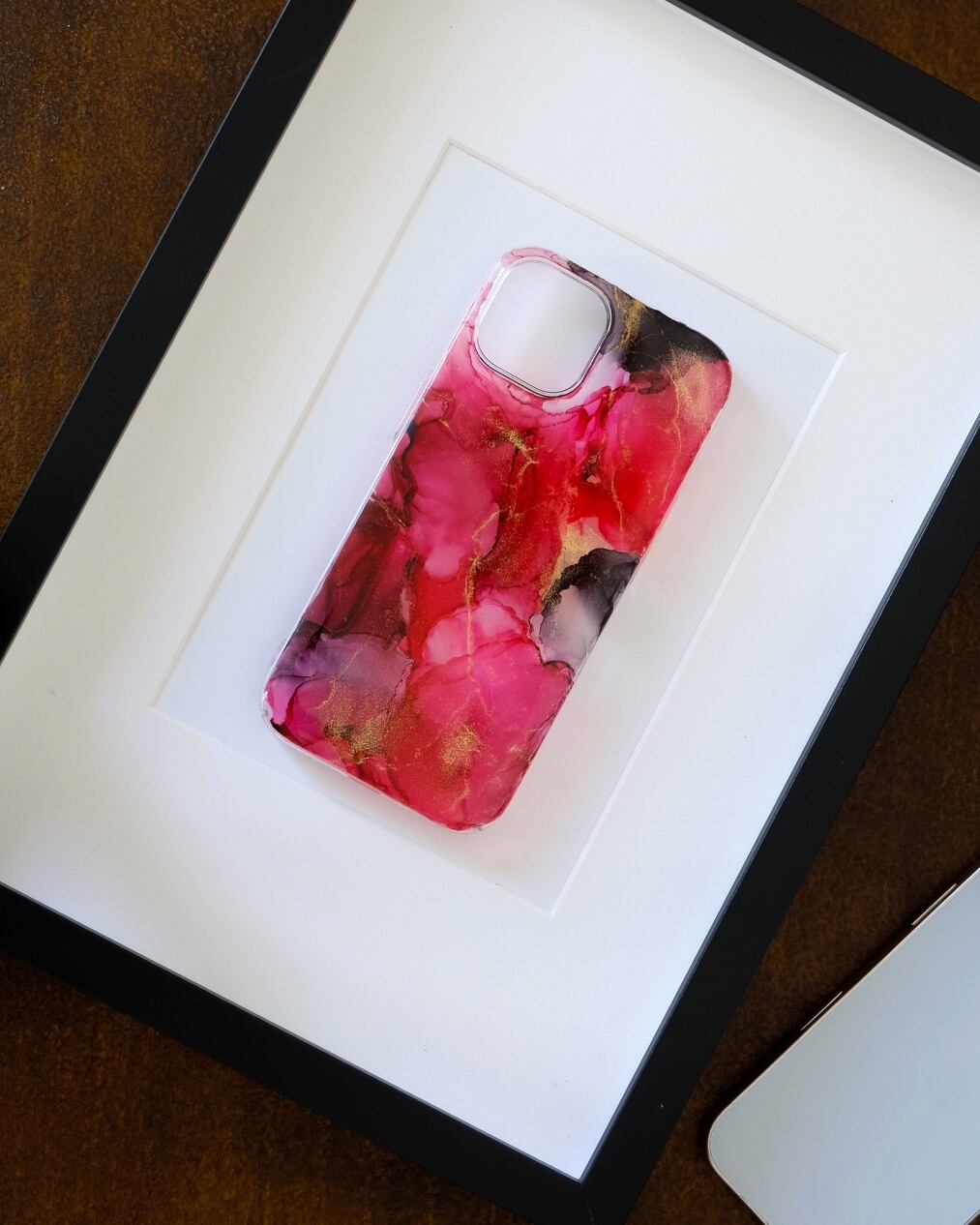 透明なケースに、アルコールインクアートをほどこした、あなただけのスマホケースです
